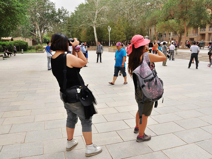 在/travel-scenic-spot/mafengwo/10240.html{敦煌} ,去/poi/5434987.html{莫高窟(/poi/5434987.html)} 的班车上撞见的两个/travel-scenic-spot/mafengwo/10099.html{上海} 妹子,左边BOBO,右边lindsey(d是不发音的)