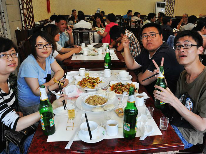 在我走出/travel-scenic-spot/mafengwo/11353.html{嘉峪关} 看见他们四个站在那儿,大学刚毕业出来毕业旅行的,我还以为他们是等车去火车站的,结果他们是刚到的,说没钱去/travel-scenic-spot/mafengwo/11353.html{嘉峪关} ,然后再坐车回去。2男2女4个人组合不错,可惜不是两对。后来在车上和孙轲聊的不错,稍微犹豫了下就和他们下车一起吃饭去,混熟还真是快。