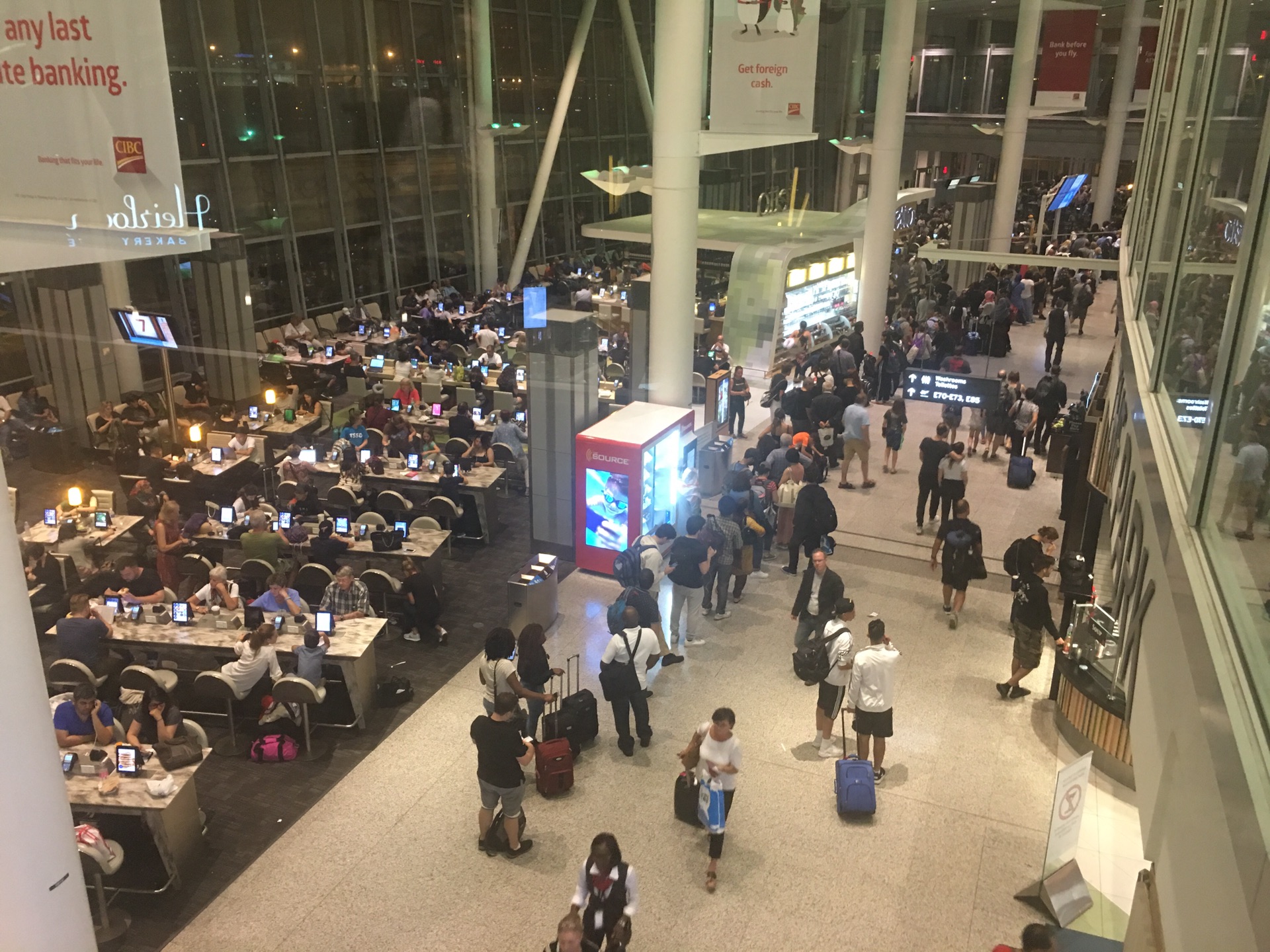 多伦多有两个机场,一个叫多伦多皮尔逊国际机场(Toronto Pearson International Airport)。还有一个叫多伦多市中心机场(Toronto City Centre Airport)这个机场很小,坐落在多伦多市中心安大略湖上的湖心岛上,这个机场只经营加拿大东部和美国东部的航线,如果住在多伦多市中心要去美国纽约、华盛顿等东部城市非常非常方便,不过只有螺旋桨等值线小飞机,属于廉价航空吧!顺带提一句,湖心岛公园真得非常漂亮,后面我再介绍