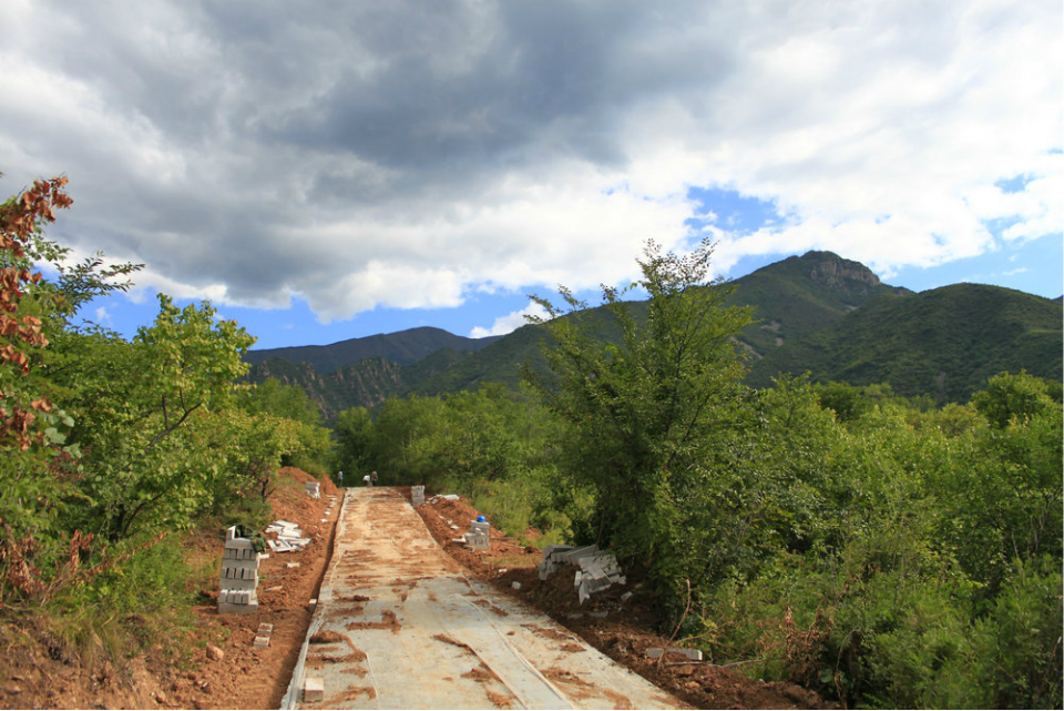 9:20我们到达西大庄科,合影,分发装垃圾的塑料袋后,高高兴兴的沿着新修的水泥路往山上而去。