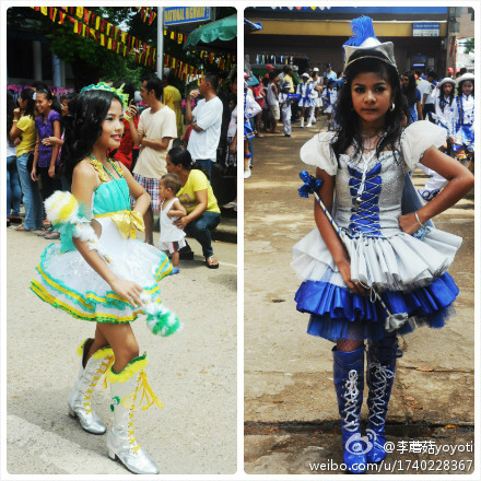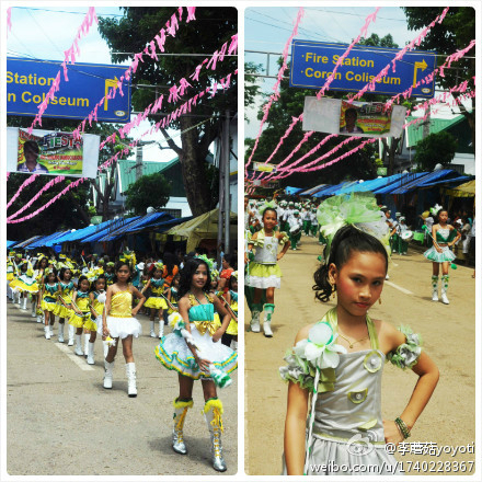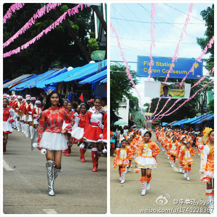 今天是节日大游行,看见非常多小学到高中的小美女游街,热带的美女们舞步好美。