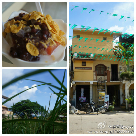 去了镇上的教堂,又去了人最多的体育场,晚上去吃著名的halo-halo,然后逛我喜欢的集贸市场。在市场遇到一个孩子,不知道为什么就突然抱住我的大腿(哈哈这就是传说中的被抱大腿吗?),是不是觉得我跟他妈妈很像丫,我反正已经是菲律宾 肤色了。大眼睛的小朋友,被我使劲亲了一口。