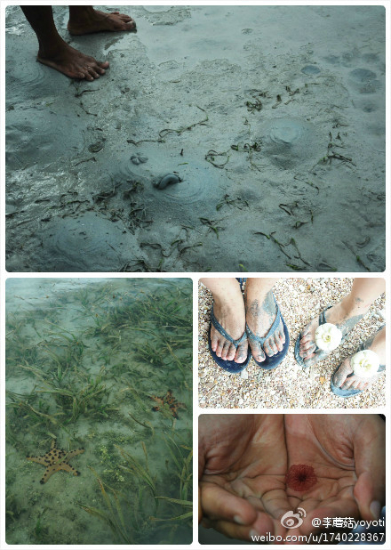 午餐后小睡,然后去泡海水温泉,这个温泉更加原生态,就在山脚下几块石头围起来的。一下冷一下暖非常好玩,泉眼的水汩汩流出都是热的,靠过去舒服极了。缺点是太原 始了,里面居然有各种小螃蟹。。。。一路开着船,看哪里喜欢就停在哪里,路上还发现了一处“starfish gardon”,哈哈。