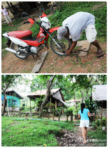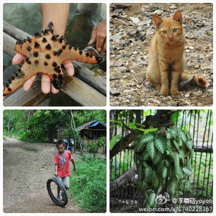 到了一个不知名的小村落下车,一行人步行一会儿,来到一片海边的红树林,很原始很漂亮。Guido爷爷带我们散个步就先走了----他需要回家,开船再来接我们过去。漫长的等待,村子里闲晃看斗鸡,跟小朋友玩,听音乐聊天(XY每天爱你更多些),中途遇到一只待在草屋子顶棚上的老鼠,以至我魂飞魄散。