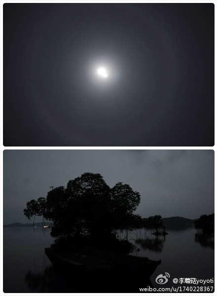 坐上船,悄悄的划出海,全世界现在只剩下月光星光,海面无声寂静,远处的渔火影影绰绰,潮湿的风吹上脸庞,抬起头看到大大的月亮,居然还有一个超大的光圈,好美好美。每过几分钟就会看到很大只的跳鱼跃出水面,除此之外全无一丝声响,此情此景直到现在还在我的脑海中,只要闭眼就能看到。