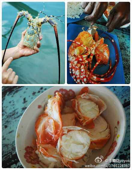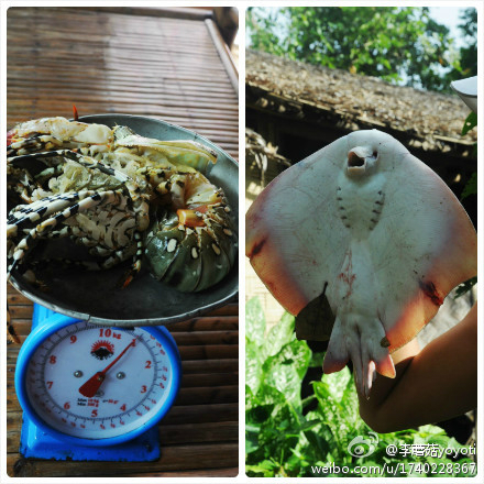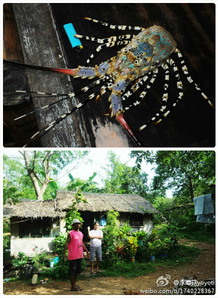 中午的时候Guido带我们去他弟弟家,走到一半就有人大声叫住我们,原来是他弟弟刚刚出海归来,抓到了大龙虾和鱼可以给我们做午餐!本来是想吃琵琶虾的,但有野生龙虾吃岂不是更大的恩赐~~~上秤一公斤,只收了我们350Peso(53人民币),还附赠了一只很大的鲂让Guido给我们做adobo(红烧),回家的路上又被叫住,加了两只大鱼!XY+JY的人品组合是不是强暴了吧!!