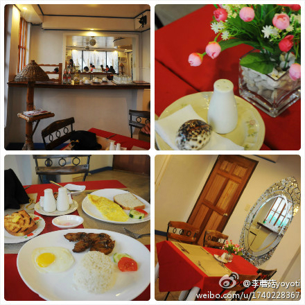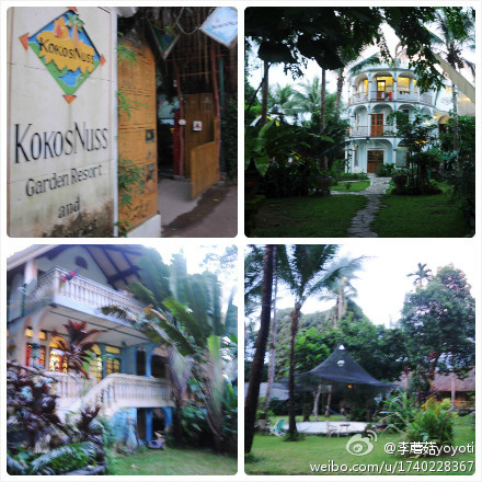 晚上跟黄哥混有肉吃!餐厅kokos Nuss我特喜欢!(是个德国 人开的酒店,花园很美,房间也各具特色)RP爆发不是白说,黄哥的朋友浩浩荡荡一个球队来马尼拉 比赛,赛后在科隆 度假,人家已经包了大游艇,我们三个女生之后三天出海就不用包船了,船费又省了~哇哈哈哈哈~~后三天的日程就这么愉快的定下了,晚餐的肉也确实非常好吃啦啦啦~