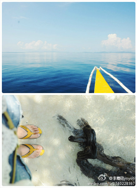 今天还要出海哦!前一天遇到一对骑摩托环岛的韩国 情侣,说好第二天拼船,他们早就等在那儿了!去晚了我很不好意思,但女生很热情,男生是腼腆型一直只是笑啊笑啊,还有两个马尼拉 makati来的女生,大家一起去到码头出发~~~船一开,韩国 女生提议我们介绍下自己,一行六人都很友善,只是除了我和韩国 女生,貌似都是沉静性格。在船上的时候,这对情侣面对面坐,一直勾着手指(好吧我承认又被感动了),我想他们应该跟我和我老公一样,是外向内向互补型,能看出感情很好,男生对女生非常细心体贴,还总是相视而笑。