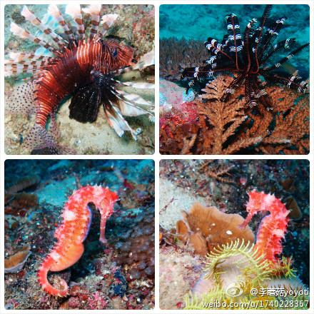 深潜不敢尝试,就放些水手拍的照片吧,优雅的海马,鬼斧神工每只都完美的海兔,狮子 鱼,透明虾,冰清玉洁的珊瑚,狡猾的小鱼,谨慎的龙虾,还有好多好多叫不出名字的神奇海底生物。