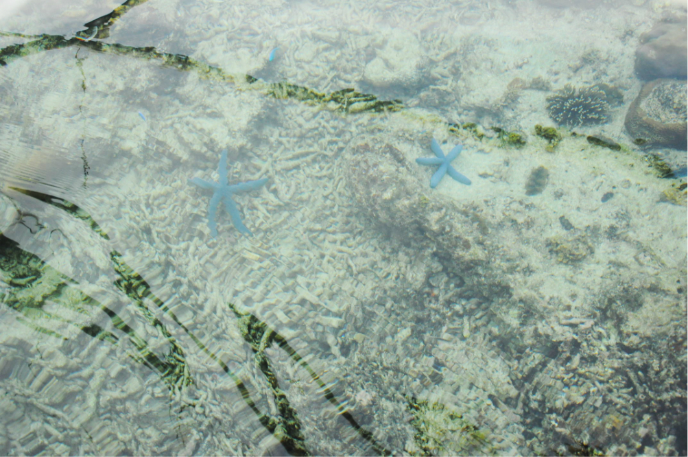 拿着手电向水下照去,一丛一丛的小小海胆,太多美丽的珊瑚和鱼,你能想象到的所有颜色都在里面,于是我放空思绪,只让大自然肆意的给我感动。