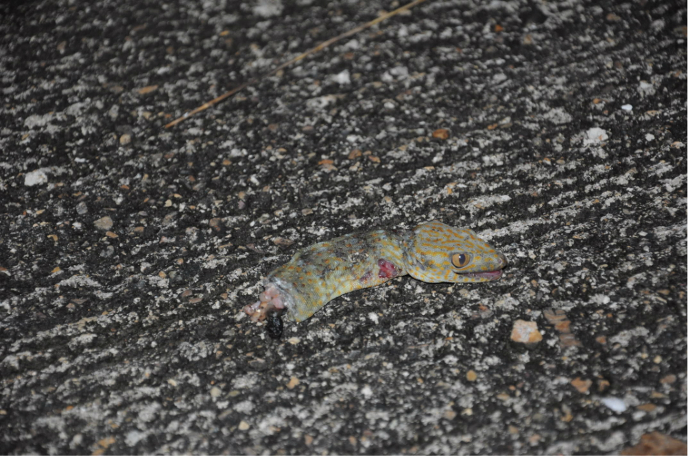 。。。登山,累的说不出话,登山,又忘了带水,登山,我的大腿已完全感受不到,登山,我要坐下休息,登山,第三次。。。。。。小二如果你能看到此处我向你献上诚挚的敬意!你们都是神人我等俗人还是喜欢有缆车的山顶。。。。然后我见到几个晨跑的当地人,马上抓来不停的刨根问底,“就是这样叫的啧咕啧咕啧咕。。”“就是啧咕啧咕。。然后啧咕。。”在我像神经病一样学了半个世纪怪物的叫声以后,有个当地人忽然一拍脑门,直接转过身跑走了(一身黑线啊我,您这是什么交流方式?我石化在此一时不知做何反应) 几分钟之后他跑回来,手里提着一个东西,我眼睛一聚焦瞬间又石化了,这这这是。。。。。蛇?他忙说不是,就是一只被其他东西吃剩的lizard而已!~LIZARD?而已?Are you serious? 又像神经病一样学了昨晚的叫声,他们肯定的告诉我就是这东西了!好吧,我本来怕死虫子,更不用说这大蜥蜴了,但确认了昨晚的劲敌不是成精的猫头鹰不是大蝙蝠也不是狼人和狮身马面兽,而只是弱爆了的“一只lizard而已”,我还是重重的舒了口气。真丢人,只能捂脸奔逃。。。。