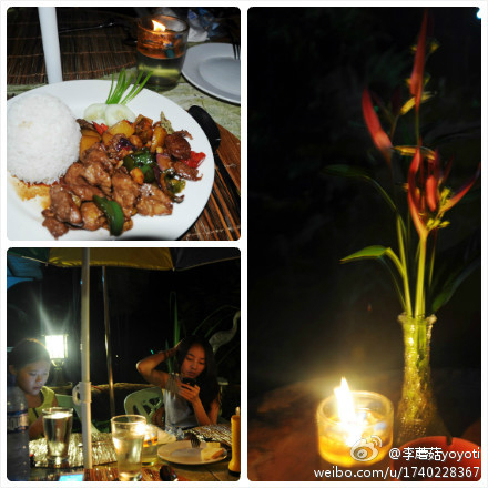 明天就要离开科隆 了,晚餐时间我们回到镇上,要最后请黄哥吃一顿饭。这里隆重跟大家推荐一家新开的餐厅Blue Lagoon ,很有特色,用餐环境很棒,而且东西都很好吃~ 三个人豪爽的点了很多算下来只有700P(106CNY),而且这边露天吃饭还贴心的准备了蚊香,算是救了我的命(在科隆 没有防蚊产品我简直不能活)。