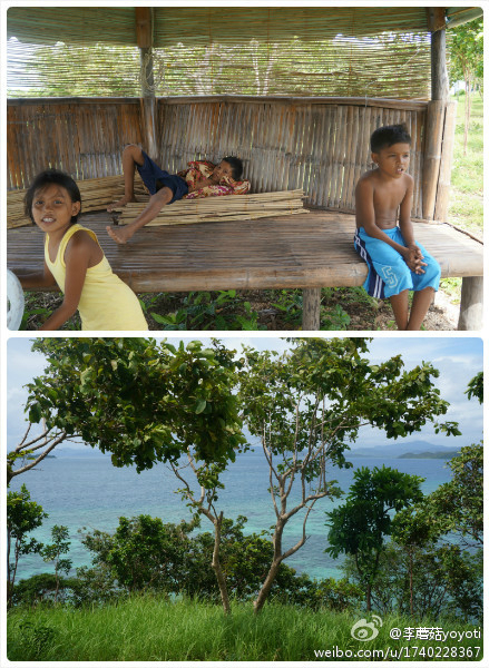 嘿有人在拍我诶!刚迷糊着就被拍醒~~~是刚才在远处玩的几个孩子,跟他们说英文好像听不懂,给他们糖吃,他们就拉着我的手指着那边,我于是跟他们走,上了一个很高的山坡,几个孩子一路玩着一种植物一会儿惊呼一会儿大笑,搞的我也只想跟他们笑出声来,抱起其中的一个最腼腆的小女生,她羞的更加不停笑起来,好可爱。走了很远,玩了很久,原来山坡后是一处自家建的观景平台(他们的爸爸是岛主),开阔的视野只有海和天,也算是传说中的私人海滩吧,很美。这算是景区外的风景了,旅行中总是有很多惊喜,真的谢谢你们可爱的孩子。
