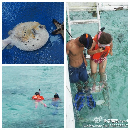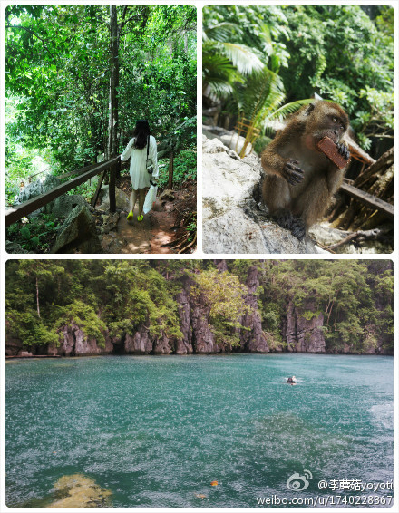 kayangan Lagoon确实十分美丽,雨中爬山还有点浪漫的说,和XY在一起,硬妹软妹搭配相得益彰,一路笑声心情大好。在可爱小黑的带领下,我还游了内湖一定要表扬自己。岛上有只骄傲的猴子,很爱吃我们的巧克力,但靠近一点就呲牙咧嘴真是一点都不稳柔。午餐后又去了其他地方,下午找海滩浮潜。可爱的小黑,牺牲了自己听音乐洗涤灵魂的宝贵时间,带着不敢独自下水的我游了大概50米,居然抓到河豚太奇妙了,更奇妙的是手一碰他,在水下就瞬间涨大起来吸进去超多水,仿佛快撑爆了皮肤都透明了哈哈,我左手捏着他的大肚子,右手抓着海星,逆着水流游回到船上。哈哈哈,河豚一放下就开始疯狂吐水,表情很像小狗,一船人都围过来看。这边有人会专门处理河豚,脊背上的一小块肉据说鲜美至极。这种虽有生命危险但能尝到人间极品美食的机会,我是从来不愿放过的,但后来玩的太兴奋忘记带下船,有点小遗憾。