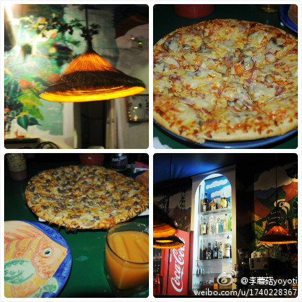 终于吃到很多人推荐的pizza,好大的一个都没吃够,聊到肚子又腾出点地方,干干净净的又吃了一个,加上啤酒饮料芒果酒,整餐合人民币一百左右,真怀念啊!