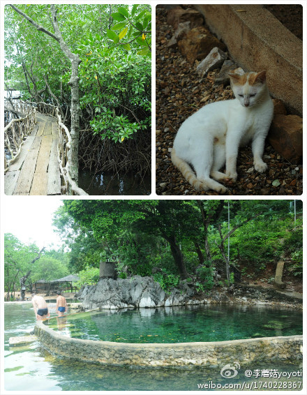 在镇上闲晃吃了本地菜的午餐,很好吃,就是各种炖菜,跟国内口味很像。然后去租了摩托车,不到半小时就开到温泉了~天然的海水温泉,很咸很咸,全身泡下去一会儿身上就有很小颗的结晶盐,正好是阴天,海水温度很合适,真是舒服。温泉的小公园里除了几个欧美人就空空如也,这就是淡季来的好处,嘈杂的人群总是让景色打折,这回可以好好享受了。泡的浑身暖透,就边上躺着睡一觉,慵懒的猫咪也来作伴,窝在椅子边一起睡。