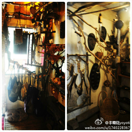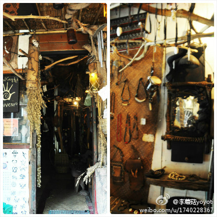早餐就暴躁的吃了炸鸡,这些天我对自己完全没要求了,关键是这边的炸鸡太好吃,回去再减肥好了。散步至一个路边小店,经过几次都觉得这间店好独特散发着阴冷气息不敢进去,今天一大早就吃的暴躁终于鼓起勇气进去了,天啊我真不确定这间店有没有被下蛊,到处是奇怪的枯木造型,手工装饰物,布包,木雕像,藤编器皿,照妖镜(我真觉得是照妖镜),店里居然还空无一人~~我拿出相机拍了几张,突然一个人不知何时站在我身后轻轻的问道,你们是韩国 人吗?------满头黑线,居然是这么俗气的问题(我们每天被问无数次),跟这店的惊悚妖森气息太不符了~我赶忙否认,中国 人中国 人,你的店好特别啊(一时找不到其他形容词),他笑笑,说希望我们晚上能来他的酒吧,会更精彩(原来店里一个破烂的地窖入口就是他的酒吧入口太有创意了),我仔细一看这人身上挂着好多奇怪的东西,还真是特别,但总觉得此地不宜久留,还是留着下次人多再细逛。