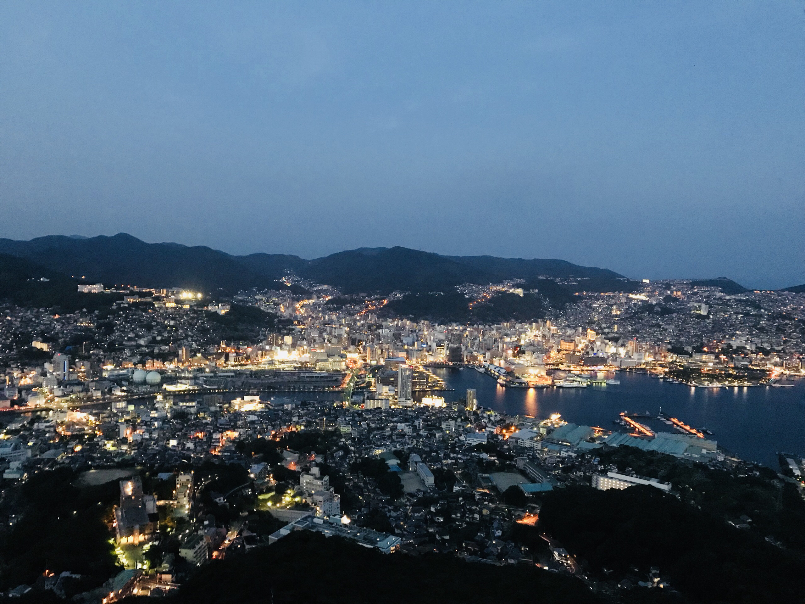 长崎位于九州的西北端,由多个半岛和岛屿构成,有着绵长的海岸线。许多人记住长崎这一地名是因为这里在二次大战中遭受了核爆炸。的确,核爆炸的历史铭刻在这座城市中,长崎和平公园和长崎核爆纪念馆是来到这座城市必看的地方。作为日本最早开放的港口城市,长崎市容有浓郁的欧洲风情,同时保有了和风的古典园林设计。其中最有代表性的是哥拉巴公园,这座和洋折衷的庭院是著名歌剧《蝴蝶夫人》的背景地。同时,长崎受中国影响深远,这里的眼镜桥由古代中国人建造,是日本三大名桥之一。长崎拥有绚烂的夜晚景观,晚间在稻佐山上俯瞰全城,与神户和函馆并称为日本三大夜景。
