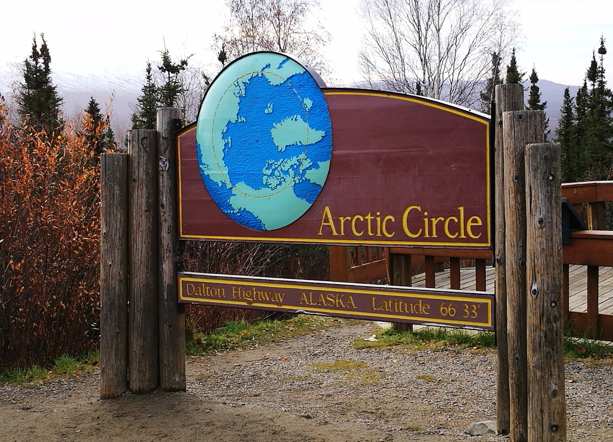 66°34'的北极圈标识,迈过去你就进入了神秘的北极地带。
