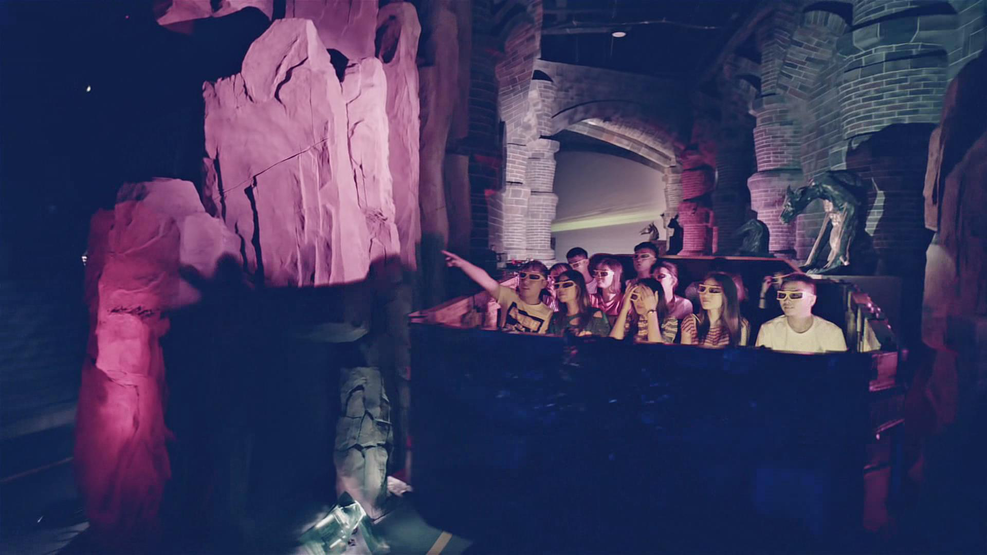 MR Ride项目,采用跟踪式立体电影技术,将虚实完美结合。游客所搭乘的小车将沿着室内轨道前行,呈现在游客眼中的是超逼真的三维空间,配合4D特效电影的故事和场景,让每个人都能感受到拥有魔法的奇妙感受,畅游这个天马行空的魔法世界。