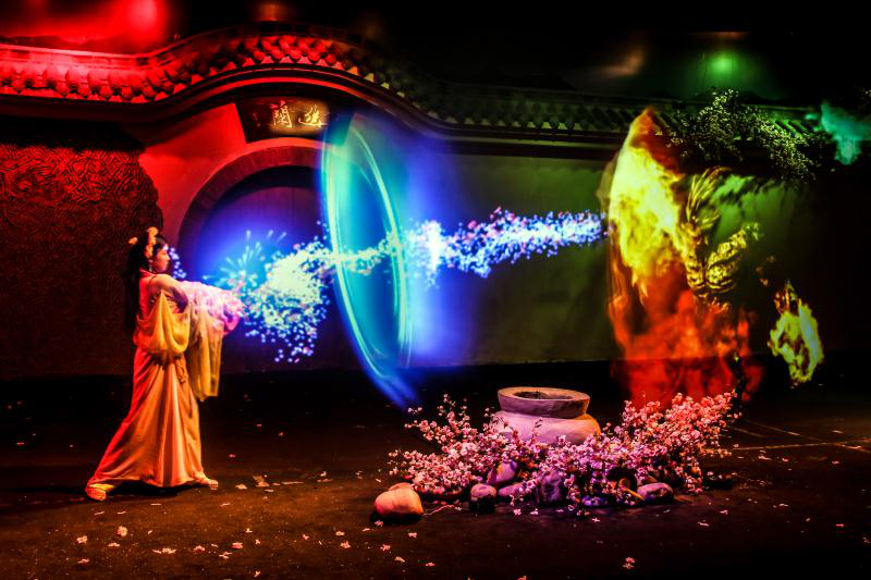 图:真人表演和精彩视效完美结合的聊斋舞台剧。 via 方特官方