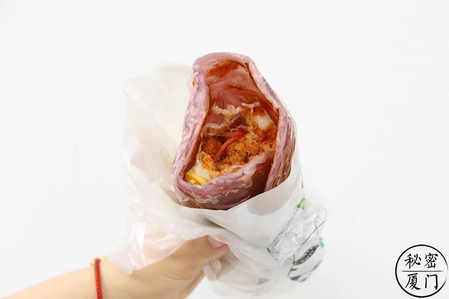 老厦门说“以前没有加肉松,吃的就是这有嚼劲的皮和里头那一点小菜,放学路上从此酸酸甜甜。”