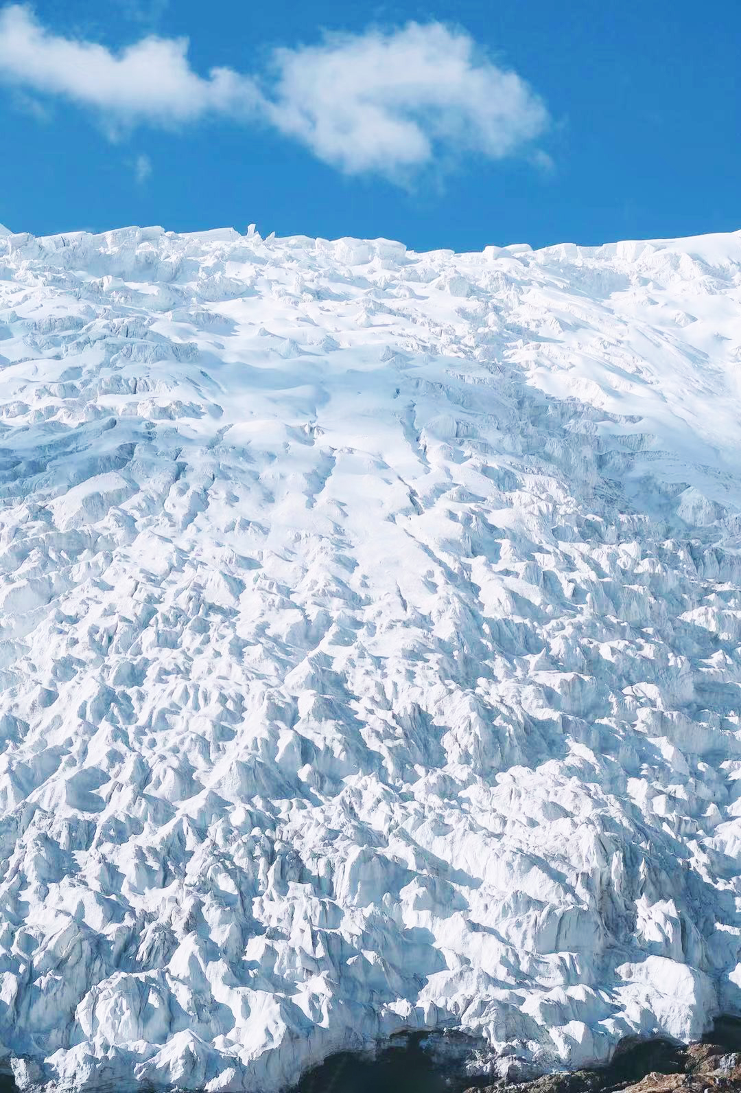 卡若拉冰川,披上雪白的外衣,冰舌也似乎要蔓延至路边,规模浩大,视觉震撼。