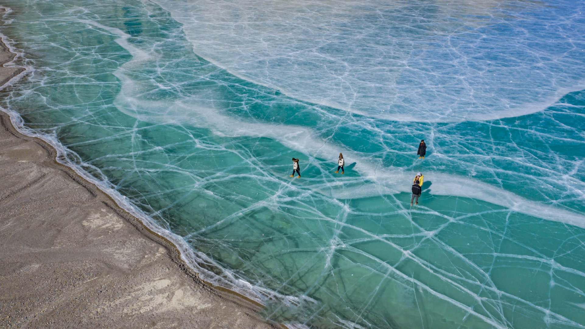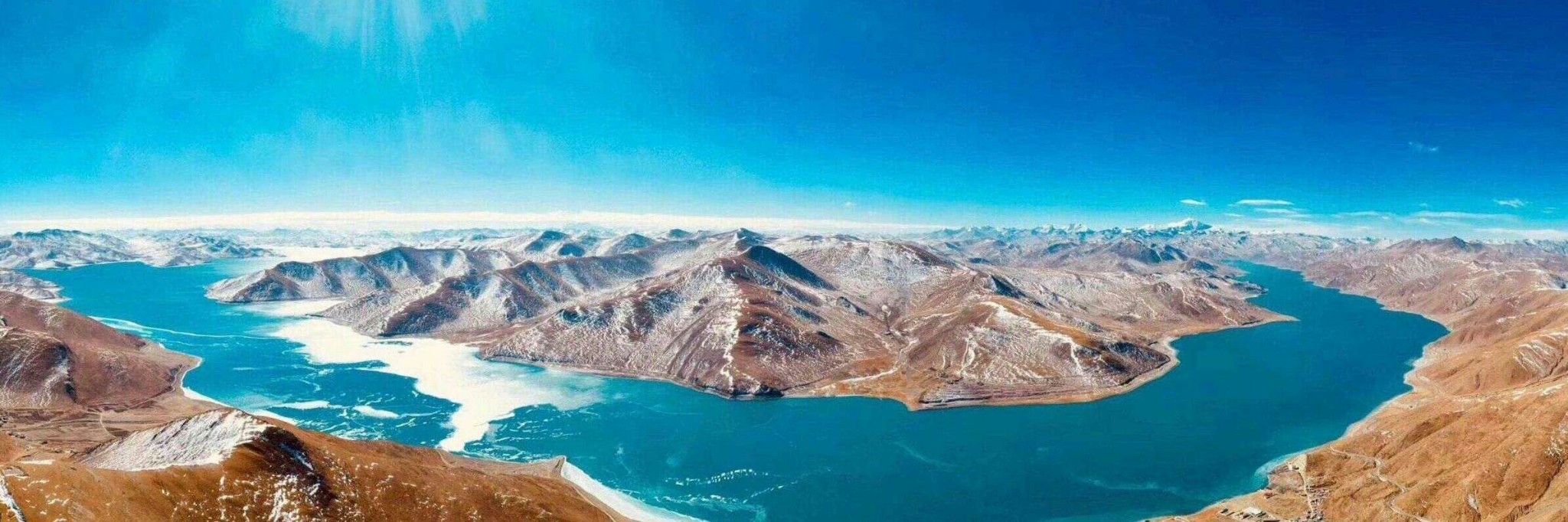 冬日的羊湖,从万顷碧波过渡到一层薄薄的碎冰冰在水面铺展开来,再到彻底冰封。可以这么说,冬季的羊湖,景色变化殊异,可以解锁