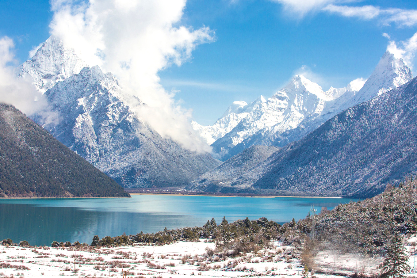林芝平均海拔只有3000左右,即便是冬季到这里来也是不会高反的。虽然林芝春日的雪山桃花冠绝天下,但别忽略林芝冬日的美景,平日里十人九不遇的羞女峰-南迦巴瓦也时常露出它美丽的头颅来。