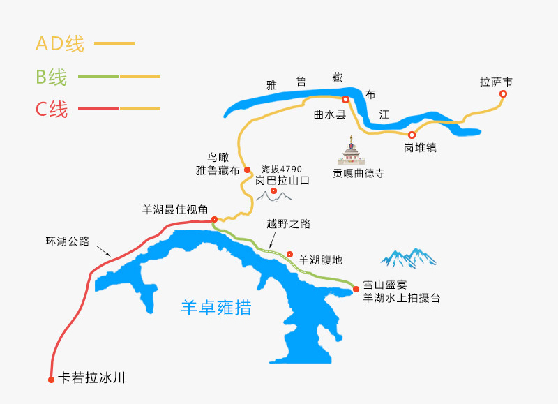 冬日西藏个人还是比较推荐短线,如果时间比较长,又觉得自己只会去一次西藏,想将西藏的主要景点连在一起玩的话,推荐这条