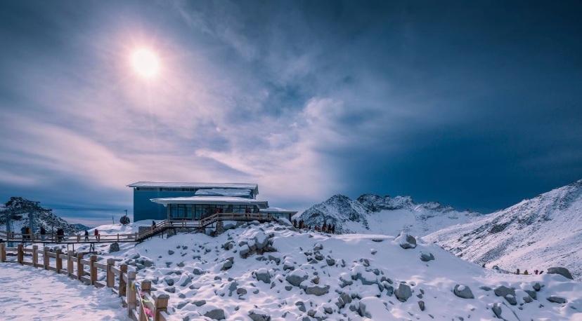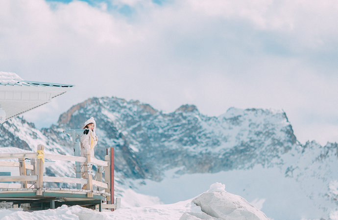 从海拔3000多米的起始点,一直到4860米的冰川上,长达15分钟的索道旅程,一定会让你惊叹。冬季,从上往下看,到处是白茫茫的一片。索道下方,则是步行通过的栈道,在冬季覆盖着薄薄的一层雪,感觉整个世界都是如此洁净纯粹,没有丝毫污染。