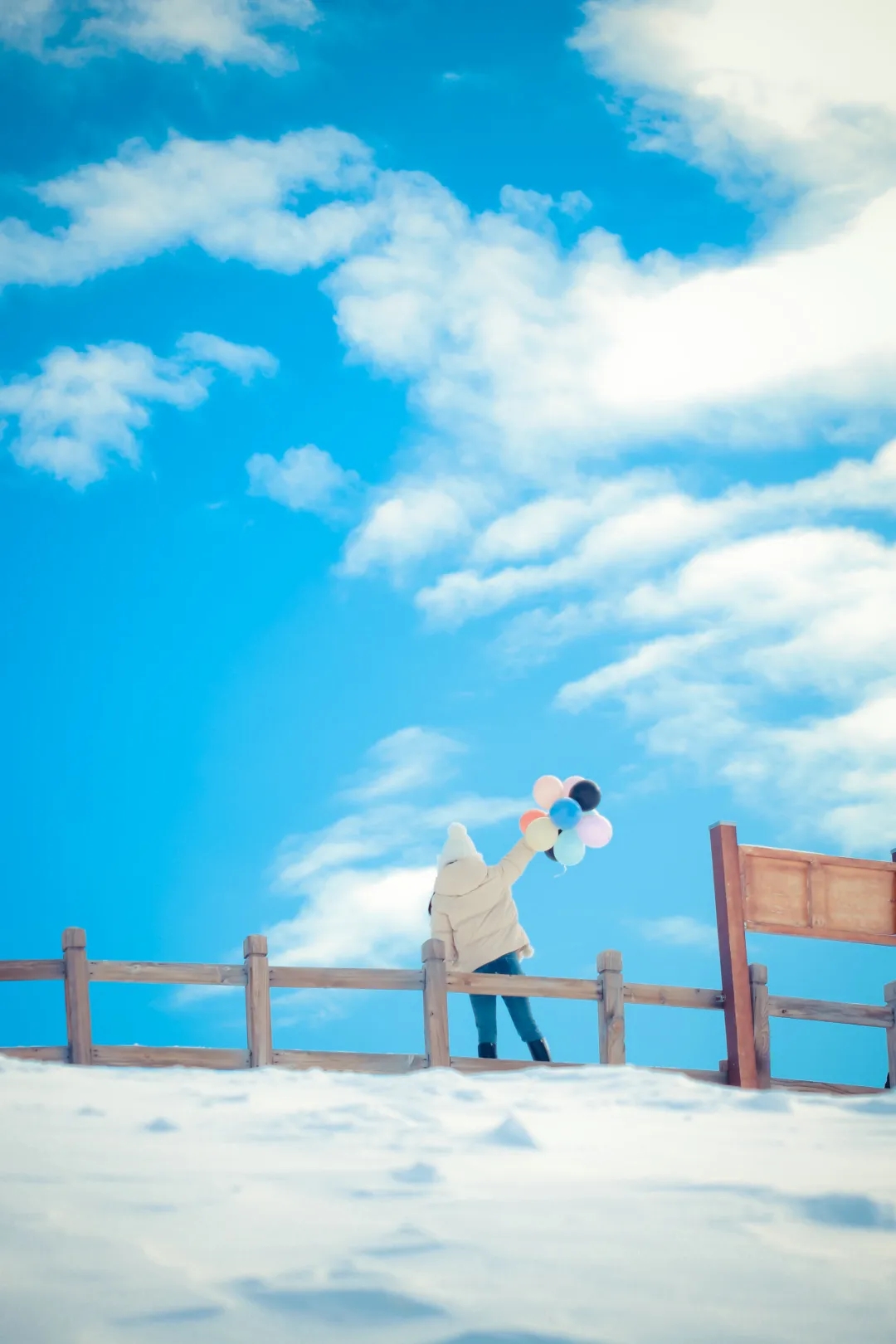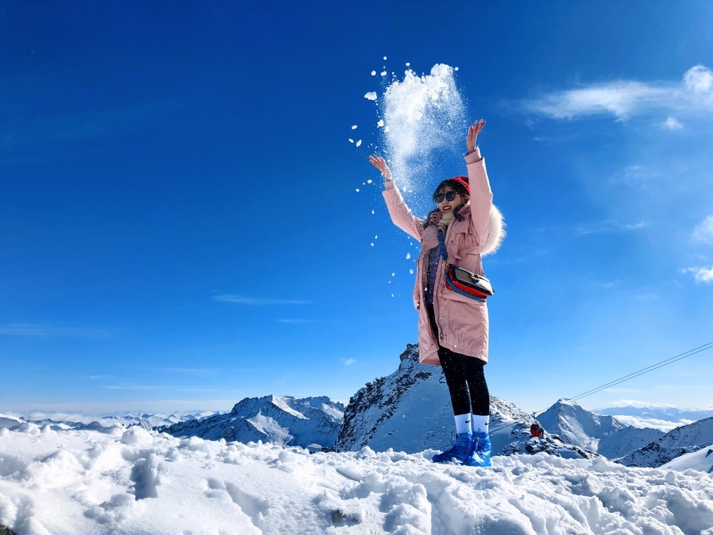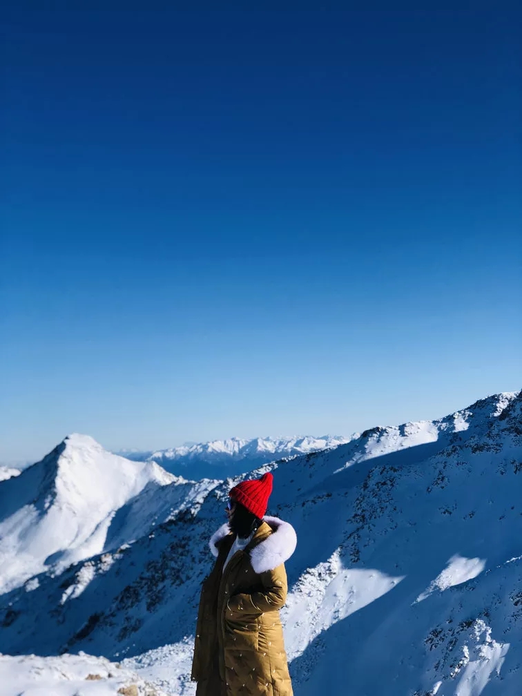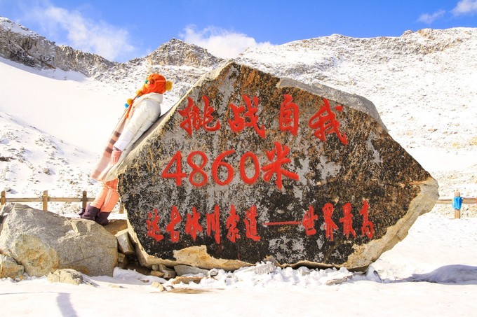 站在大大的观景平台上,拥有观景的绝佳视野,头上是一片白雪蓝天,周围一片银装素裹的白雪世界,看着一望无垠的壮阔白雪,呼吸着白雪散发出来的清凉香甜,享受阳光倾洒而下的温柔,好像来了一次身心spa。最后别忘了在4860挑战碑处为自己的勇气打卡一张!