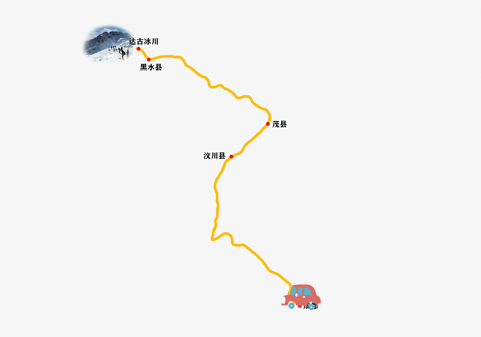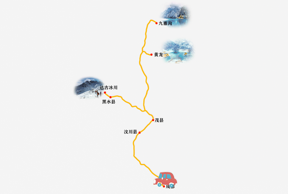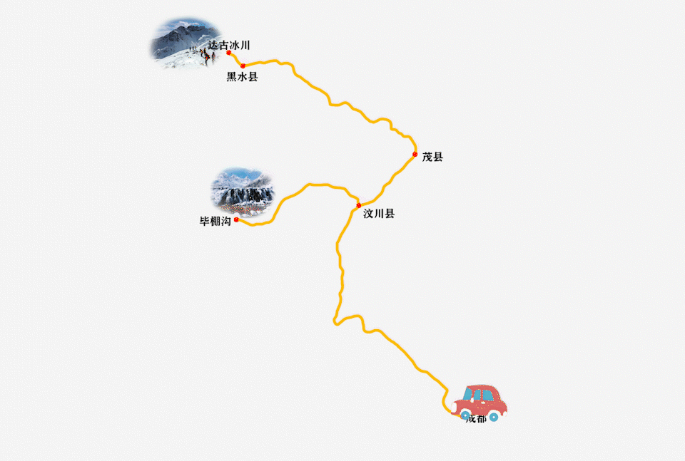 东线:成都—绵阳—江油—北川—茂县—黑水县(达古冰川)