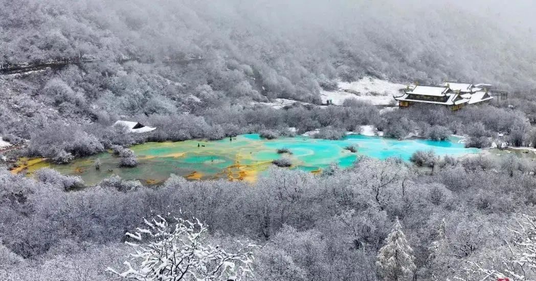 黄龙以彩池、雪山、峡谷、森林“四绝”著称于世。沟内遍布碳酸钙