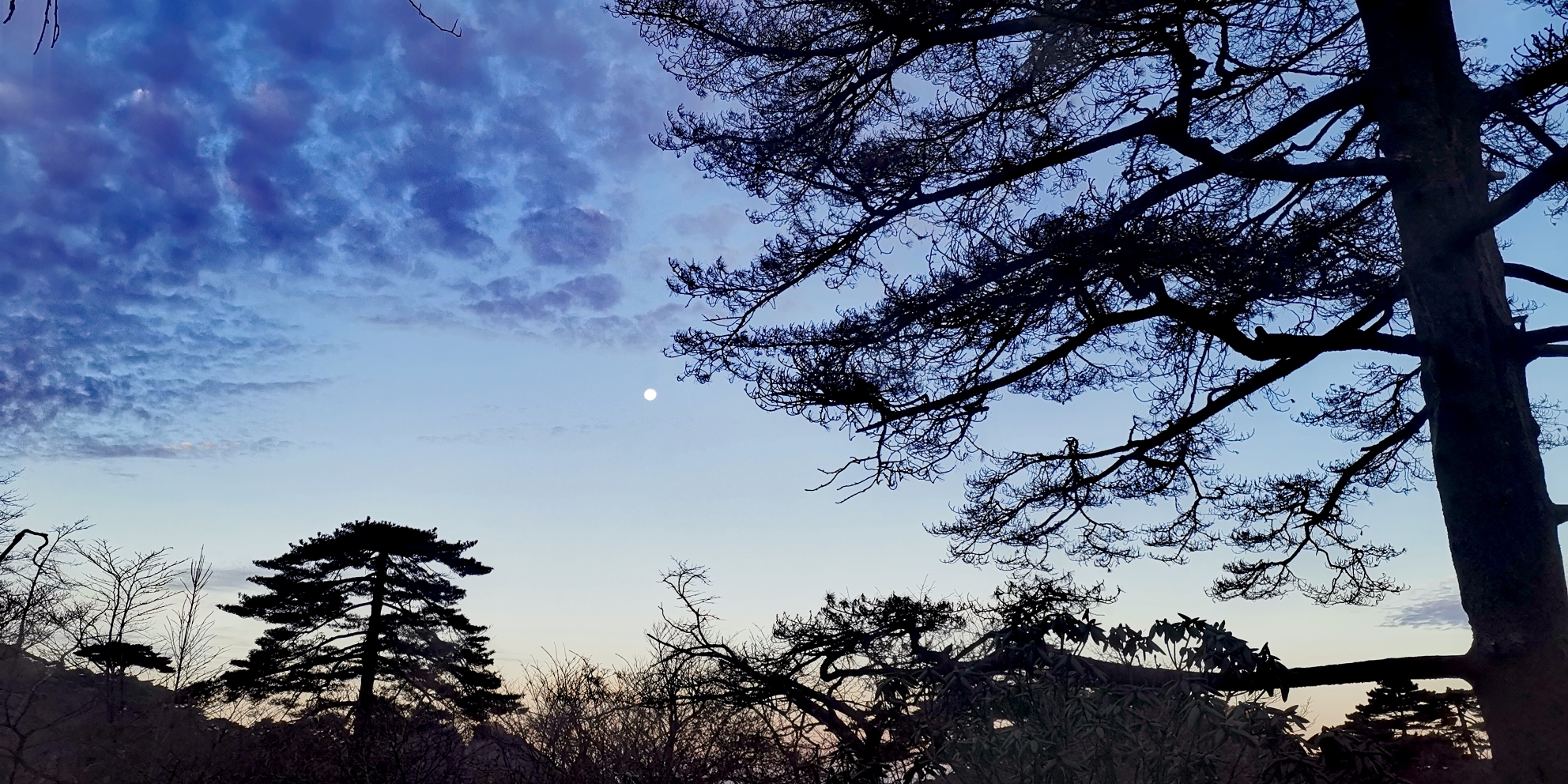 今年11月底去的,住的狮林,所以离始信峰比较近。在蘑菇亭看到的日出。 有点遗憾是,没有云海,而且当天风特别大,在始信峰上实在是抵抗不了。蘑菇亭日出依然美哭了!!!日出后的月亮也超美!