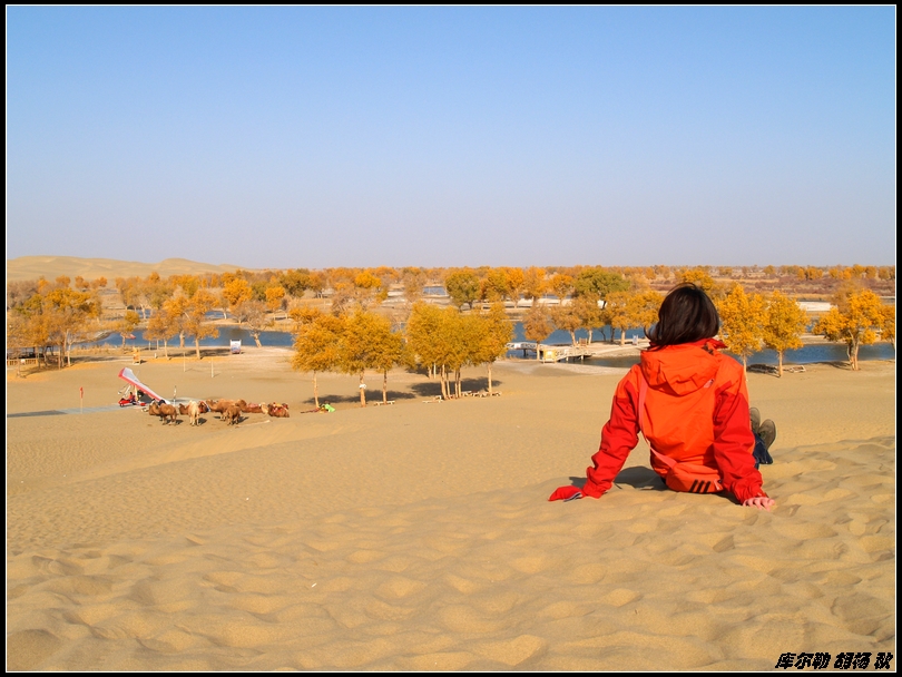 金黄的胡杨,细软的沙漠,让人流连,很想静静地坐在沙丘上,看日出,观日落。