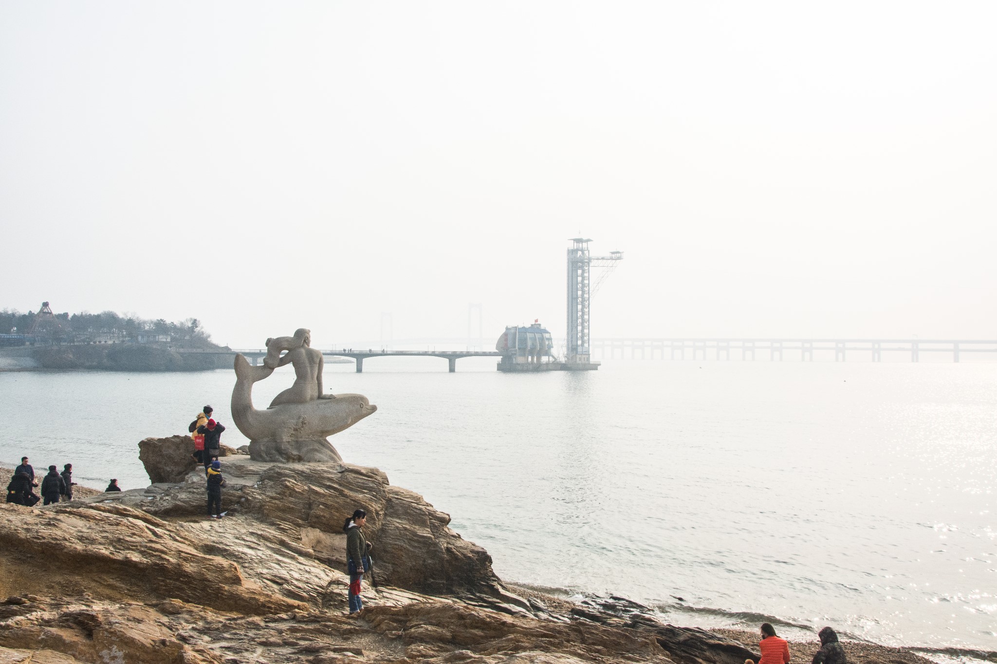 因为霾很大,影响景色啊,不过水干净,看着心情还是很好的,冬游的人很多!!!