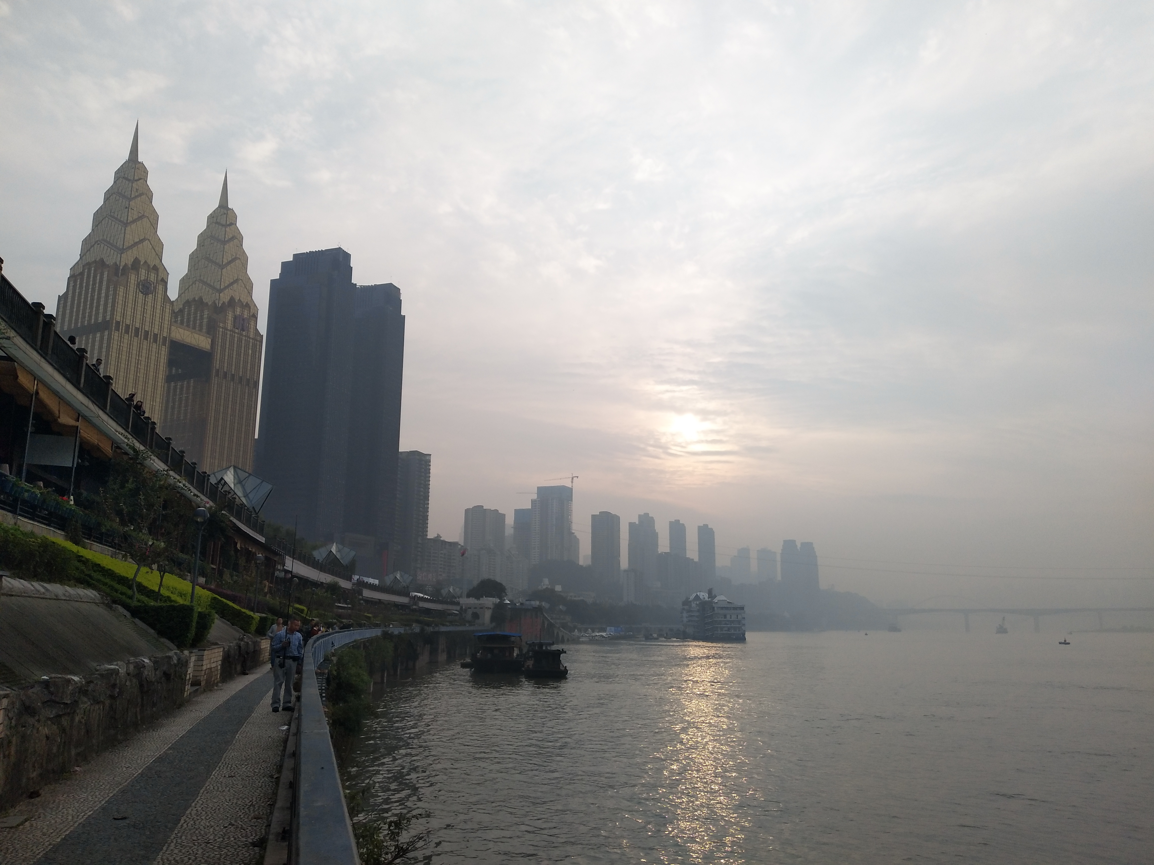 去的时候天气不太好,雾蒙蒙的,但是仍然自己却觉得很久没有这样的夜景了,可以租自行车骑车,在喜来登旁边,很多家,但是除了公园,路上车辆太多,上路需要勇气,于是就在公园内骑了一个小时,这里吃饭的地方很多,还有临江的酒吧,坐在这里一边看夜景,一边吃东西,感觉棒棒哒。