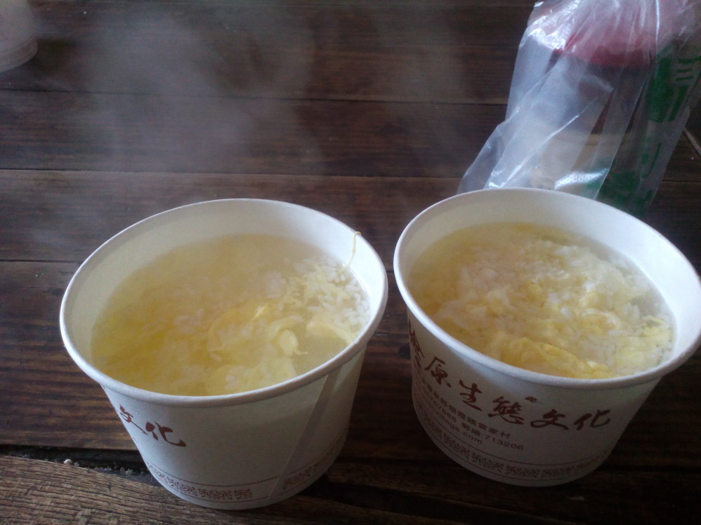 一般来说景区里面的饭菜是比较贵的,山脚下一般一个青菜是10-15元,肉菜是20-40元,山腰上招待所是每一个菜15元,(除了鸡蛋,基本上找不到其他肉菜,还好当时带了罐头鱼和午餐肉),蛋炒饭一碗15元。