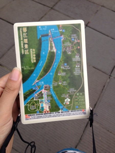 路途上在翻看余秋雨的《文化苦旅》,忽然对都江堰心生向往,结果,到了都江堰才知,那到处满满泛滥的题句“问道青城山,拜水都江堰”正是出于余秋雨之手,忽然就想起余秋雨说,那些因文人诗句炒热的景点将失去原有的意境,颇有文人寂寞之感。都江堰景区右手边的南桥繁复瑰丽,鲜艳的雕梁画栋是我的爱啊!桥下水流奔腾,混合着清新的空气扑面而来。参观都江堰,都江堰景区分为河流和爬山,看河流奔腾任山巅清风拂面,别有情趣,景色却是一般的。可能对于懂水利的却是很好吧,对于文科生,只能感受那份千年的历史沧桑了。不过山上的景点的故事性以及建筑,真的比河流给我的震撼来的多得多!租了一个导览器,10元一个。可以沿着路线图行走,说起来,体验并不是特别好,因为是信号感应,走得快了可能就听不到了。