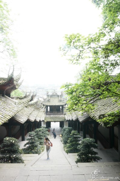 到了都江堰的山区部分,分为两条路了,然后毫不犹豫地选择了二王庙这条线,层层的高台阶,爬的略累,但是体验到同一建筑的视角的变换,真心很赞。