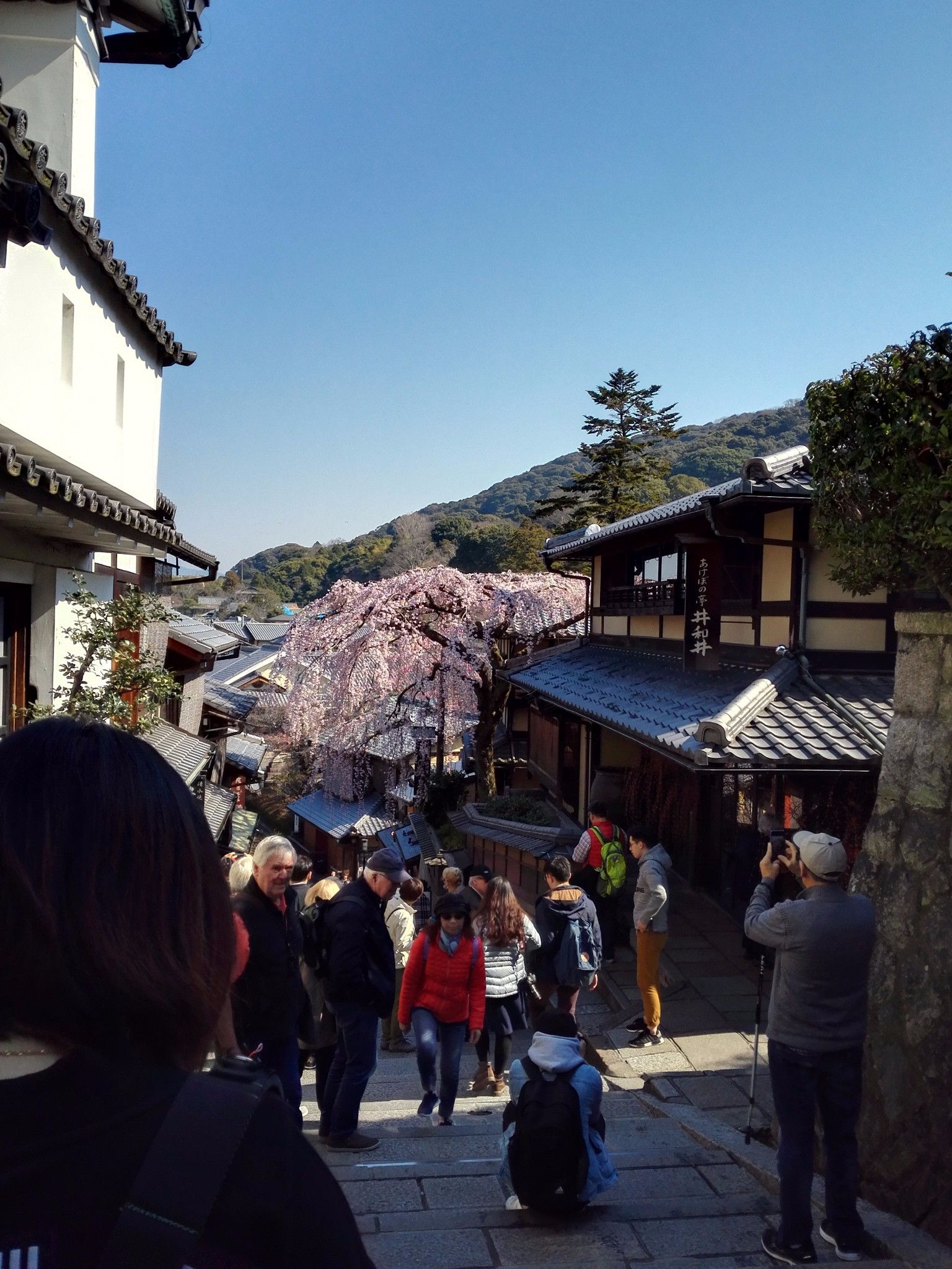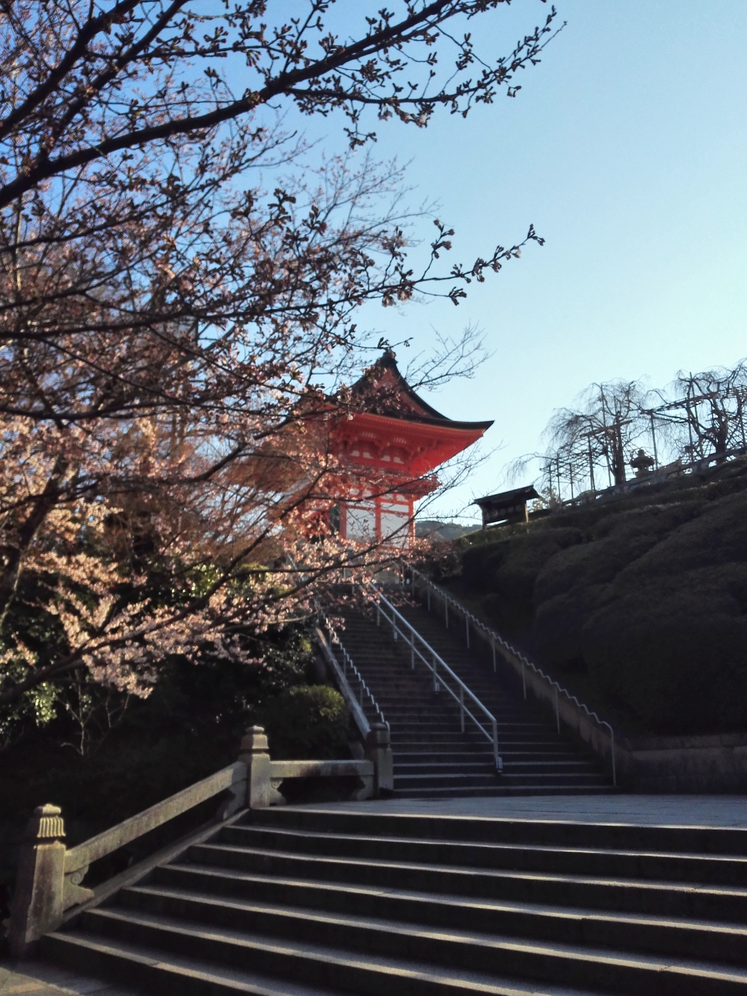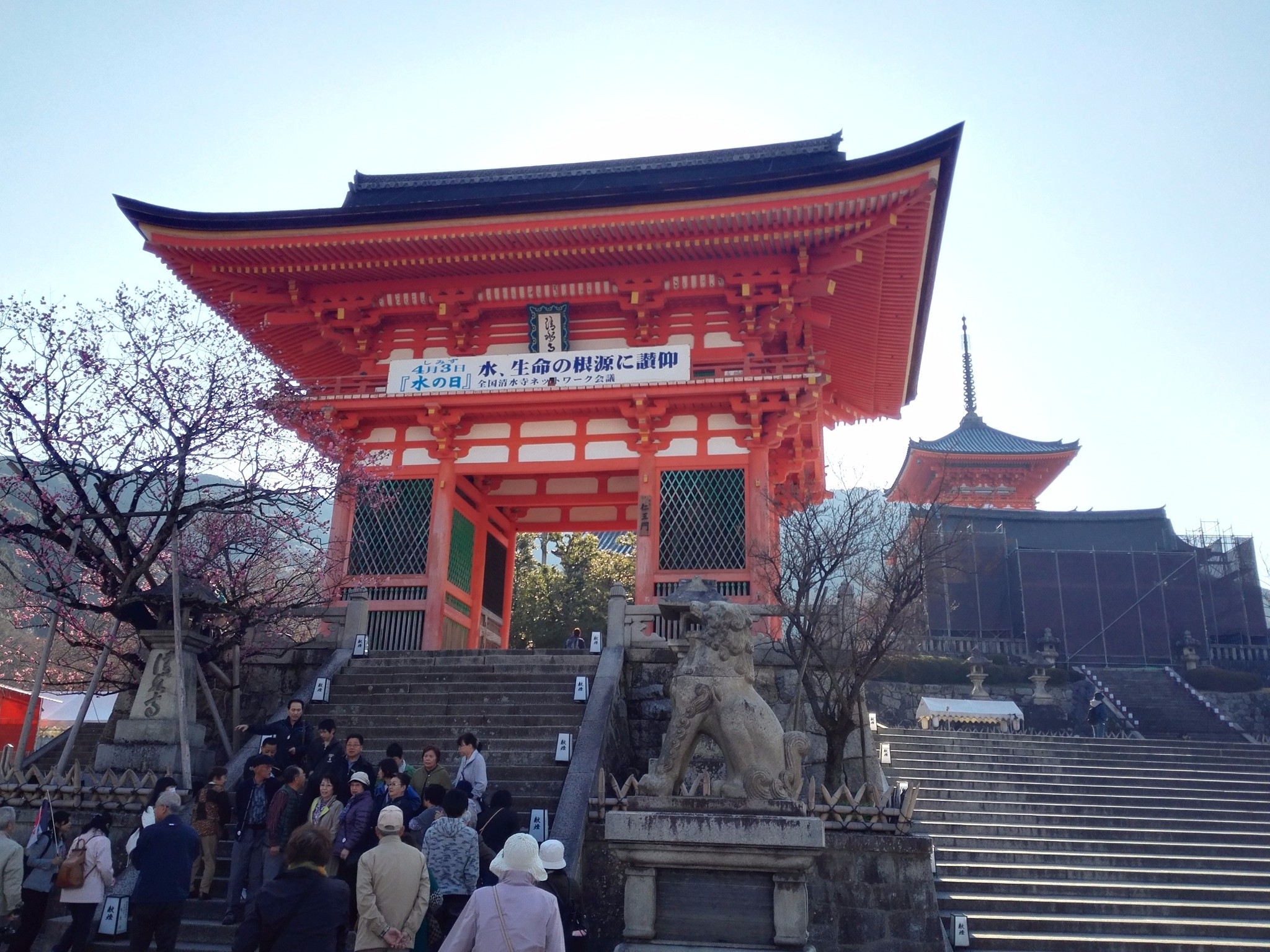 没能看到樱花胜放时的样子。但是也很漂亮。我们去的时候清水舞台正在整修。多少打些折扣。