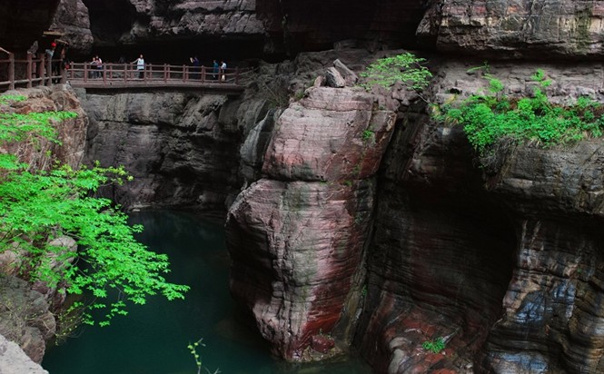 百丈峡的岩壁直直的上去,云雾比较浓的话看不到顶,在古代的话估计真是一人当关,万夫莫开