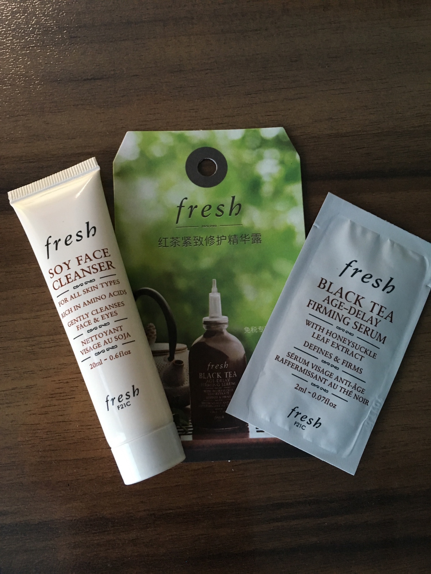 32岁,干性肌肤,每日工作环境面对电脑、空调。 这两年来一直在用馥蕾诗的各种产品,喜欢认同馥蕾诗的护肤理念,采用天然植物、造型简约又不失质感。 非常开心收到大豆洁面和红茶精华的试用装,下面和大家分享下这两款产品使用感受 大豆洁面:透明啫喱质地、细细滑滑,上脸很清爽,略有一点点泡沫、易洗掉,不会过度清洁非常舒服。 红茶精华:味道极好,闻后心情愉悦,啫喱质地、不粘腻,涂在脸上用手轻轻按压,吸收快,无负担,使用一次保湿效果还是看得到的,抗老佳品。