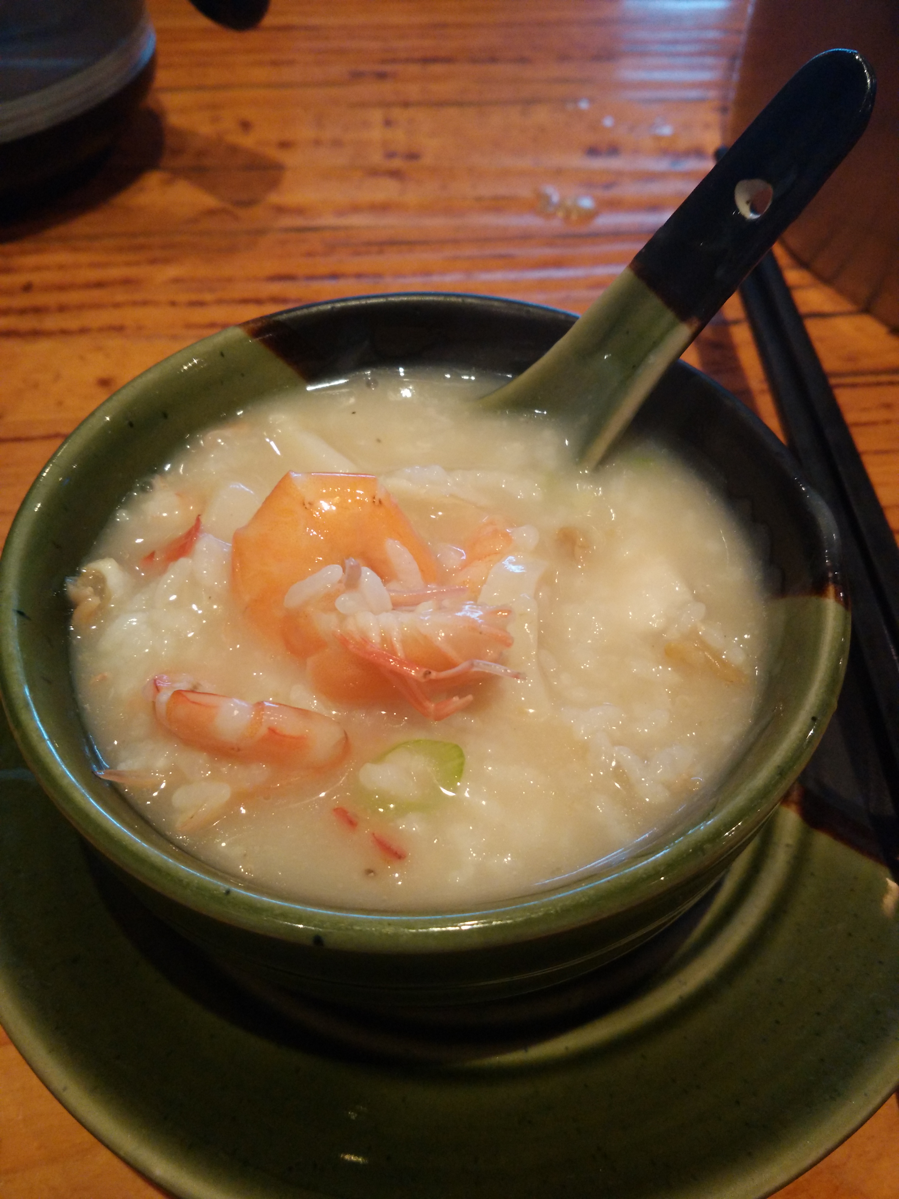 来广东就想尝一下正宗的砂锅粥 吃起来还不错吧 但也没有很惊艳 我家这边的做的很蛮好吃的~~因为我一个人 店员给推荐了不错的搭配 基围虾半斤加三只什么子来着忘了。。