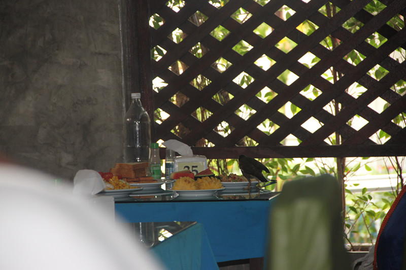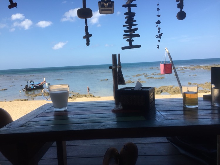在兰塔可可住的三个晚上还是很休闲的。整个人都静了下来。房间比较小,床是1.8m的,再没有空间可以加床了,孩子10岁以下的早餐好像是200bht/天,10岁以上的我给忘记了。早餐品种不多,但味道还可以。我做了一次thai with oil massage,400bht/h,做得一般吧。白天的日子,我就是海边躺尸,泳池里游泳,和好友侃大山。小孩子们还组成了国际比赛团队,各种皮肤的在一起打台球,即练了口语,还玩得不亦乐乎。酒店前的海上一直有一条小船,我一直以为停在那里是因为照相漂亮,孩子走的那天问我为什么。我就去问服务员,原来是为客人上去钓鱼用的。可惜我们没有时间去玩了。酒店前有很多礁石,涨潮之后,里面有很多鱼,老公和孩子还潜下去看了很久的鱼。另外,出了lanta coco的巷子口往左走10分钟有711,往右边不过马路的第一家饭馆,价格不贵也很好吃,性价比高,再继续往右走5-10分钟左右,有一家小菜市场。我们还在lanta coco的餐吧里吃过一次,也不贵,味道不错。有一天孩子想喝椰子,服务员直接爬上树,直接砍下来,给孩子们喝。还有一个晚上,我们从711买了一堆零食、方便面、酒和饮料,两家人把小桌子拼起来,一边吃饭一边聊天,真是太舒服了。想想现在的工作,再想想那几天的日子,我太太太太怀念了~