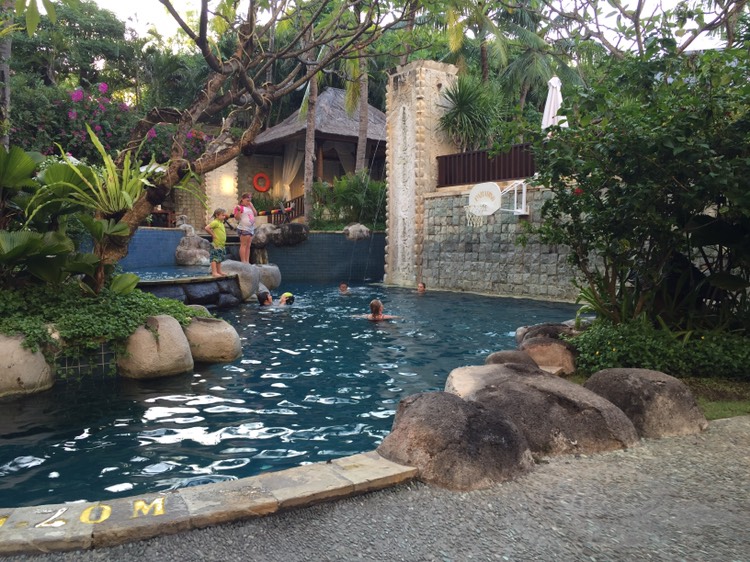 6月,我们一家三口,包括7岁的儿子,在这家酒店住了三晚。我是从他家酒店官网预订的,大约含税600rmb的池景房,入住时免费升级为海景房,但其实看到海的范围并不大。在官网提前一定时间预订是有部分折扣的。并赠送了免费接送机,双人1小时传统bali spa,大约500rmb的餐饮卷,还有保龄球,DJ之类免费项目。spa需要提前预约,就在负一层,蓝梦岛一日游回来累得按按很舒服。保龄球和DJ在kuta station hotel酒店里,离paradiso大约3分钟路程。dj因为带着小孩,我们没有体验。餐饮卷用了两晚,第一晚在b'couple吃的牛排、什么炒饭(忘了)和冰激凌,含税花了大约400rmb多。第二晚,是老公在b'couple打包的港式小点,在房间里吃的。好像有皮蛋瘦肉粥,虾饺等等大约100多rmb。 这三晚住下来,应该说还是很愉快的。酒店服务人员都很热情。接待人员会说少量中文。入住时,立即送上欢迎饮料,扫去一路上闷热感。酒店位置相当好。出酒店右边,离waterbom水上乐园不到10分钟步行。离discovery mall不到10分钟步行。离kuta沙滩,从走侧小门出去,穿过一个小市场大约5分钟步行。小门并不容易看到。我们第一晚并没有看到这个通往沙滩的小门,是出酒店大门左手边第一个小十字路口,再走转穿小市场走的,这样稍远一点。酒店外,吃饭、shopping的地方很多。如果喜欢逛街,可以好好看看。另外,大堂边有kura_kura bus,据说是当地的公交车。 酒店房间干净卫生,家具略旧。酒店部分设施略旧。但床很舒服,房间有个大阳台。在阳台吃东西,看风景,很是自在。酒店房间每日提供两瓶矿泉水、洗头水、沐浴露、护发素和身体油等等。 酒店早餐很丰盛,提供的样式很多,还有白粥和鸡肉粥。酒店的泳池有多个,有水上篮球和水上排球,有儿童池,小朋友玩得很开心。 酒店内有一个西式餐厅、一个日式餐厅、另一个就是b'couple。前两个我们没去。b'couple提供的大部分是中餐,有海鲜。