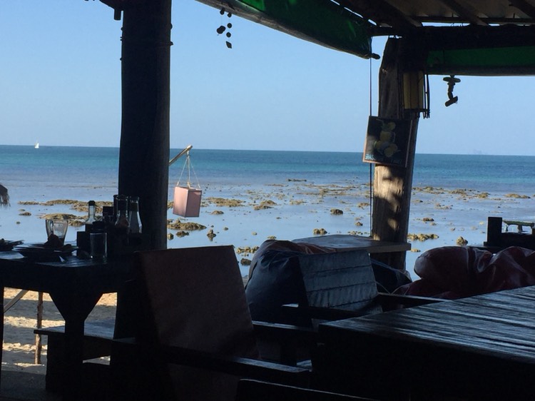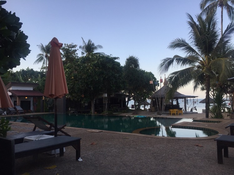 在兰塔可可住的三个晚上还是很休闲的。整个人都静了下来。房间比较小,床是1.8m的,再没有空间可以加床了,孩子10岁以下的早餐好像是200bht/天,10岁以上的我给忘记了。早餐品种不多,但味道还可以。我做了一次thai with oil massage,400bht/h,做得一般吧。白天的日子,我就是海边躺尸,泳池里游泳,和好友侃大山。小孩子们还组成了国际比赛团队,各种皮肤的在一起打台球,即练了口语,还玩得不亦乐乎。酒店前的海上一直有一条小船,我一直以为停在那里是因为照相漂亮,孩子走的那天问我为什么。我就去问服务员,原来是为客人上去钓鱼用的。可惜我们没有时间去玩了。酒店前有很多礁石,涨潮之后,里面有很多鱼,老公和孩子还潜下去看了很久的鱼。另外,出了lanta coco的巷子口往左走10分钟有711,往右边不过马路的第一家饭馆,价格不贵也很好吃,性价比高,再继续往右走5-10分钟左右,有一家小菜市场。我们还在lanta coco的餐吧里吃过一次,也不贵,味道不错。有一天孩子想喝椰子,服务员直接爬上树,直接砍下来,给孩子们喝。还有一个晚上,我们从711买了一堆零食、方便面、酒和饮料,两家人把小桌子拼起来,一边吃饭一边聊天,真是太舒服了。想想现在的工作,再想想那几天的日子,我太太太太怀念了~