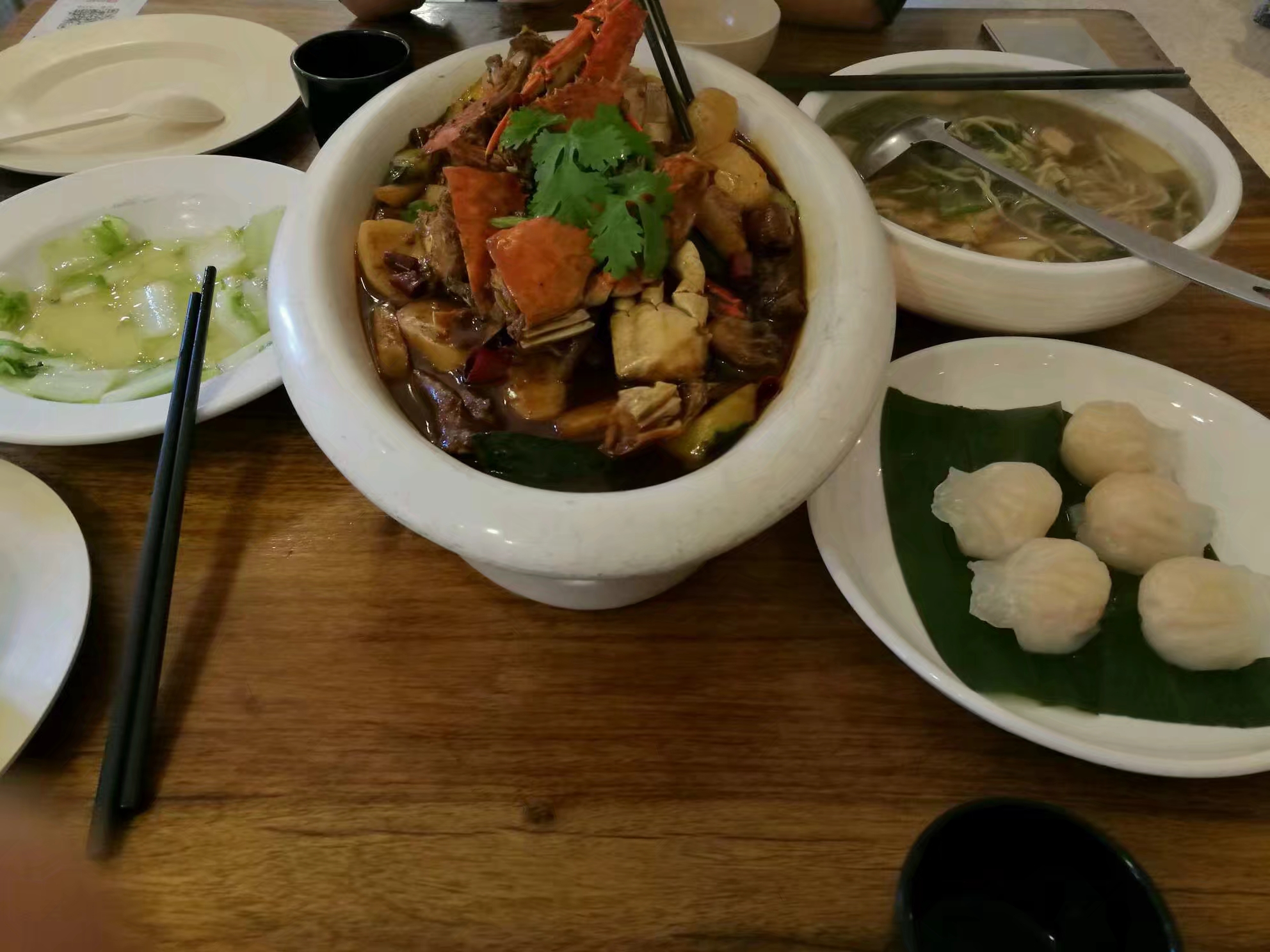 除了要排队,没别的缺点了。超佛系的商家。菜做的真不错,价格也很亲民。 很喜欢香辣大闸蟹。已经去了三次了。菜换了好几次,从未踩到雷。南瓜饼适合带女票。每次去总要点鸡爪。酱鸭也很有特色。羊排味道也不错。来自西北人的认可。牛肋骨也是很赞。挑不出不好就是了。要说不好的话就是,排队,预约,排队。营业时间太短。一不小心就吃不到。