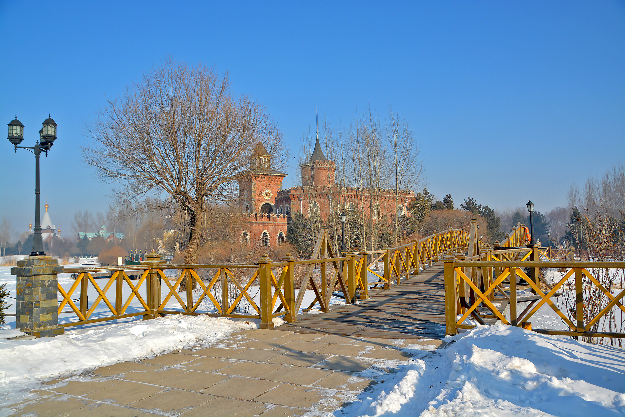 位于郊区,适合拍照,非常好看,童话的城堡、房屋,早些去,能看到未经踩踏的白雪,相比市区的雪更加漂亮。